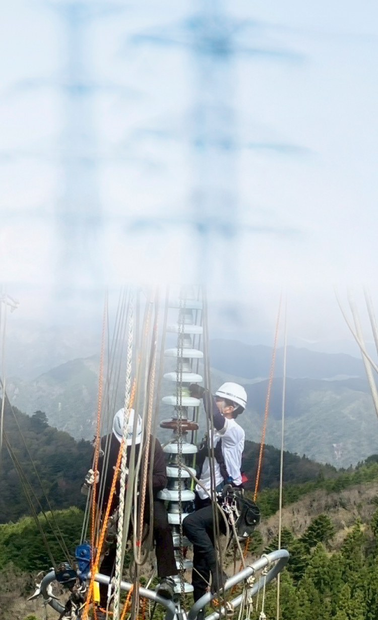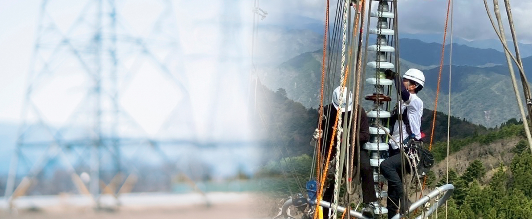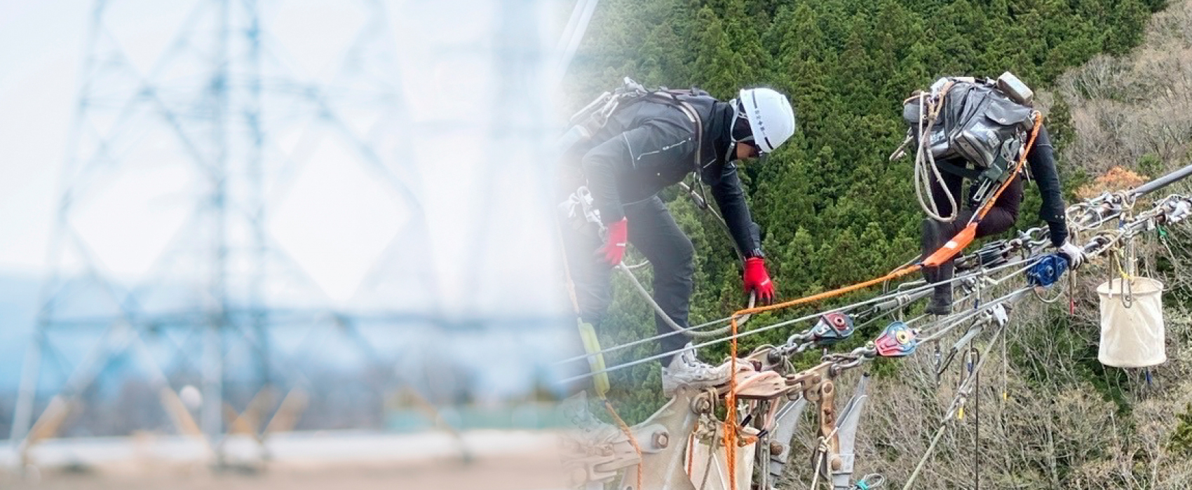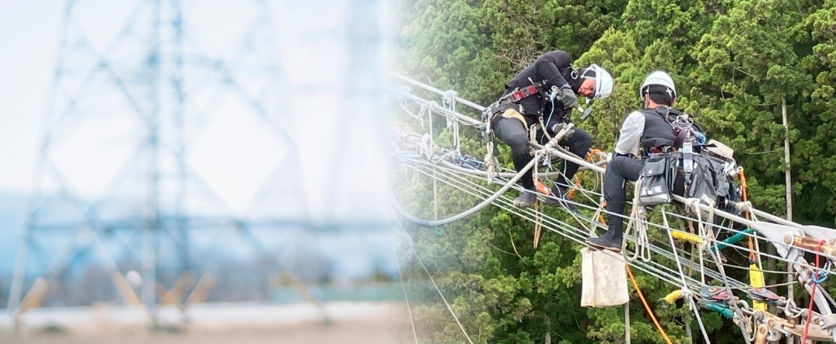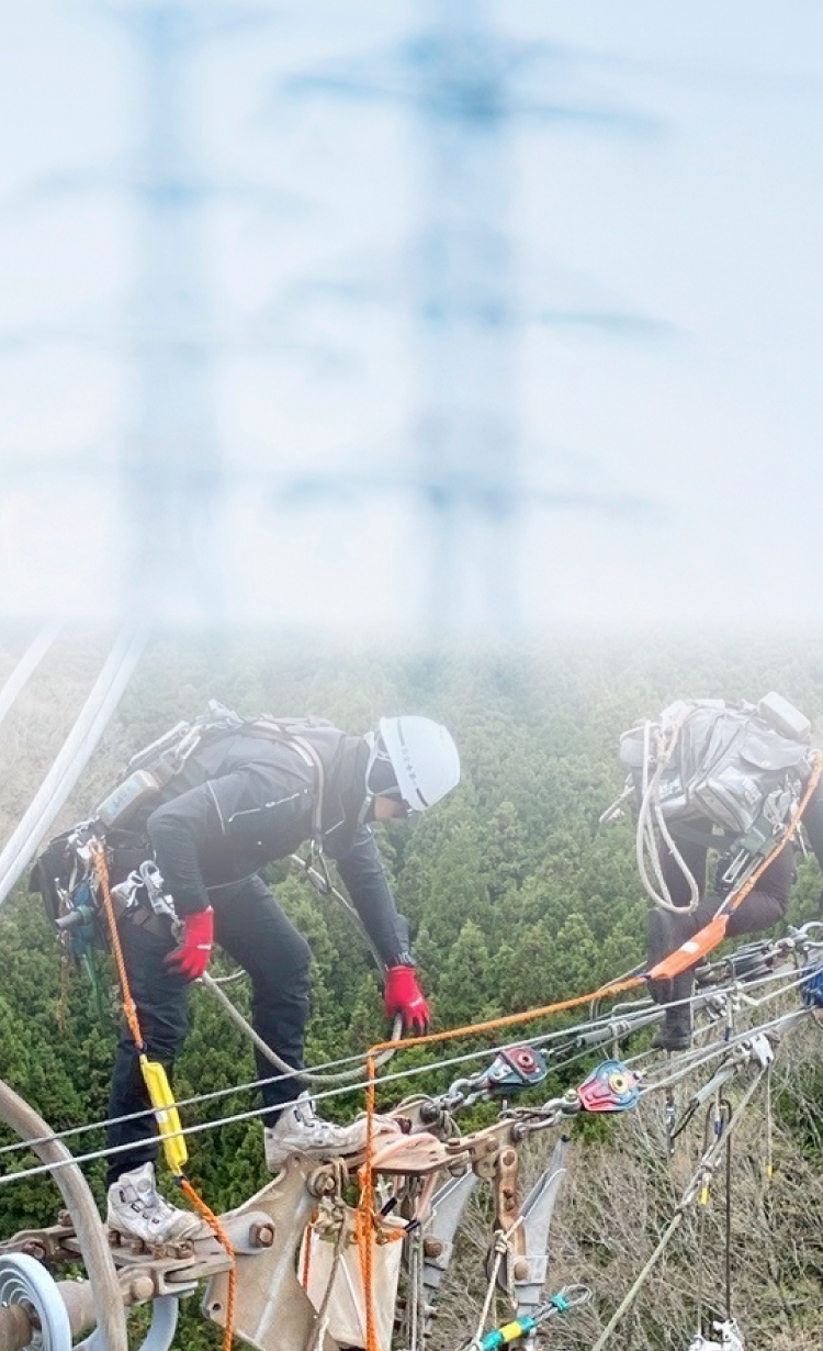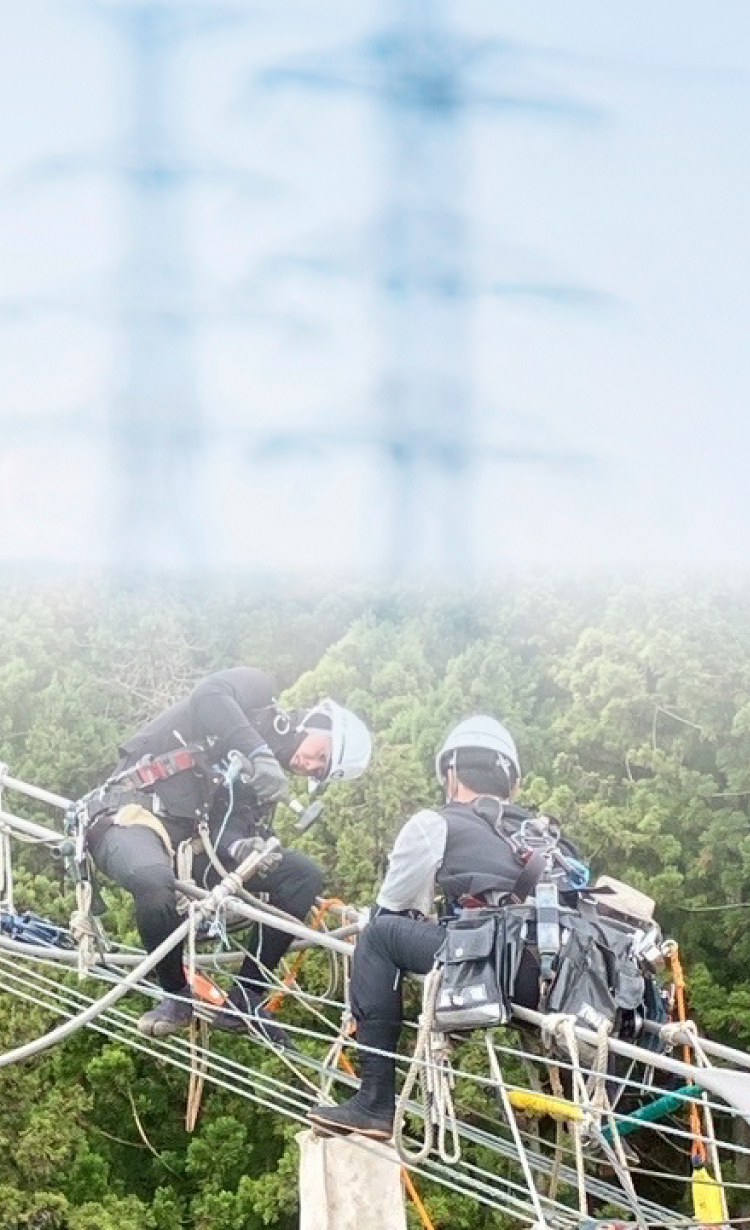 私たち株式会社 岩電は、送電線の建設工事、張替工事、保守・点検といった専門的な業務を通じて、